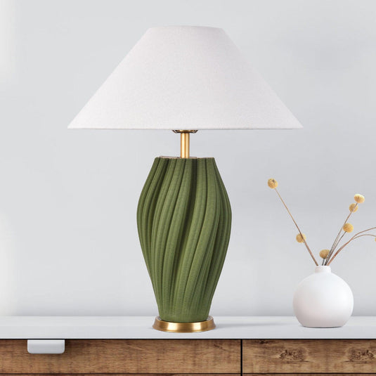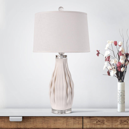 Elegant Illumination : White 3D Ceramic Table Lamp with Fabric Shade